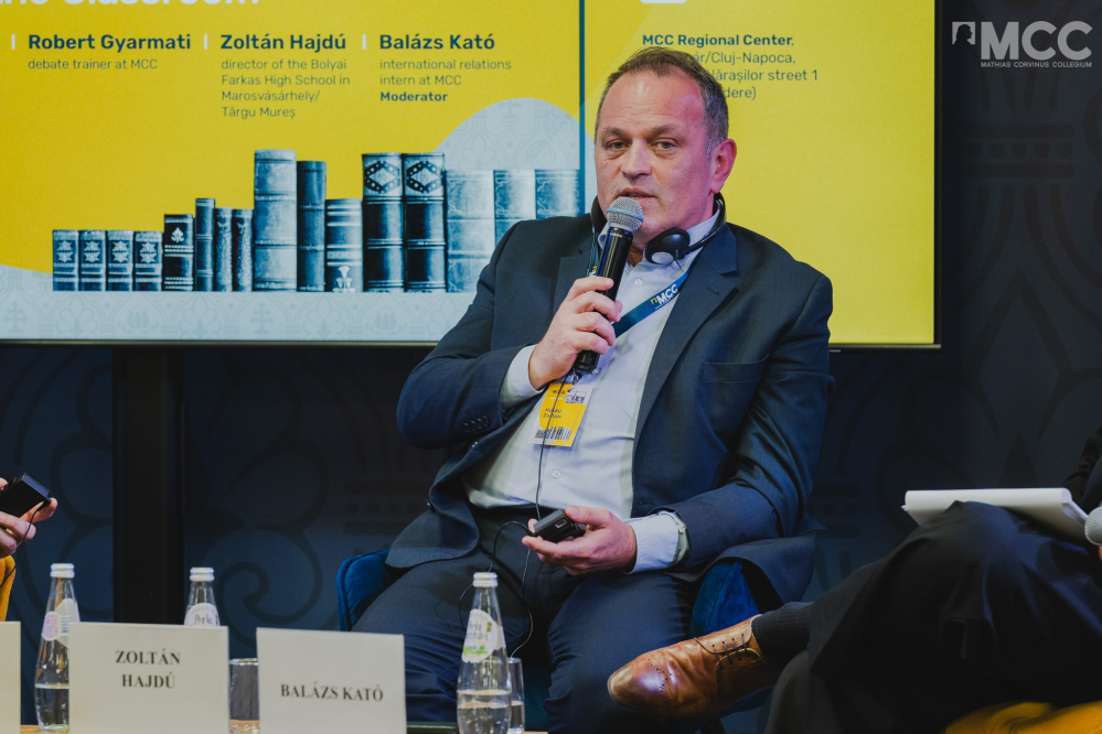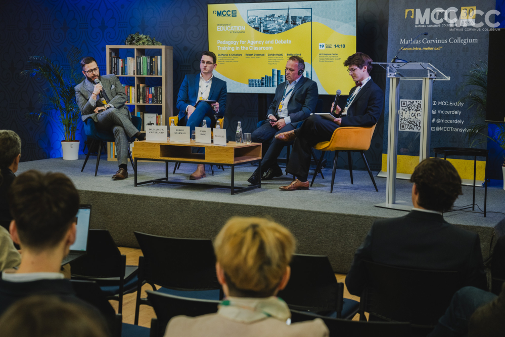 Meghívott előadói: Dr. Marco Crivellaro, az athéni American Community Schools könyvtári és kutatási koordinátora, az MCC vendégkutatója; Hajdú Zoltán, a marosvásárhelyi Bolyai Farkas Elméleti Líceum igazgatója, valamint Gyarmati Róbert, az MCC vitaedzője. A panelt Kató Balázs, az MCC szakmai gyakornoka moderálta.
