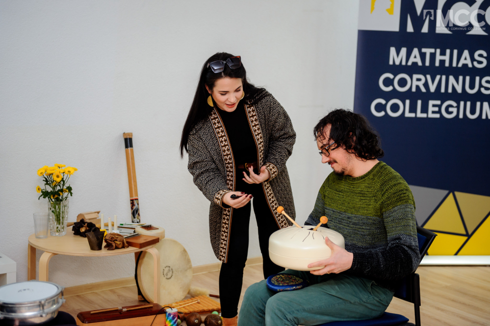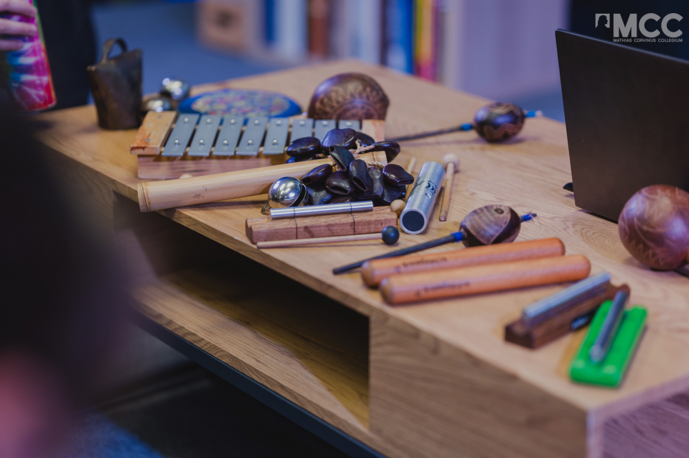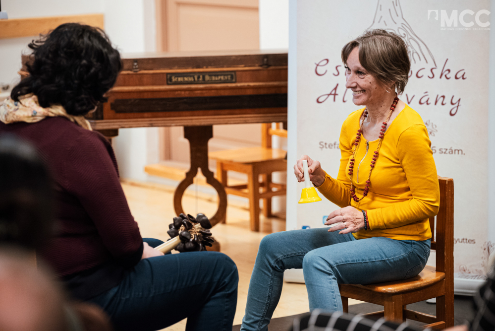 Az előadás további részében Paár Julcsi improvizációs gyakorlatokat mutatott be néhány bátor önkéntes segítségével. A jelentkezők ritmust és dallamot hoztak létre, párbeszédet folyattak a hangszerek segítségével, majd egy karmesteri vezényletet is bemutattak a hallgatóságnak. Az esemény végén a résztvevők a terápiás hangszereket egy izgalmas ritmusgyakorlattal megfűszerezve próbálhatták ki.
